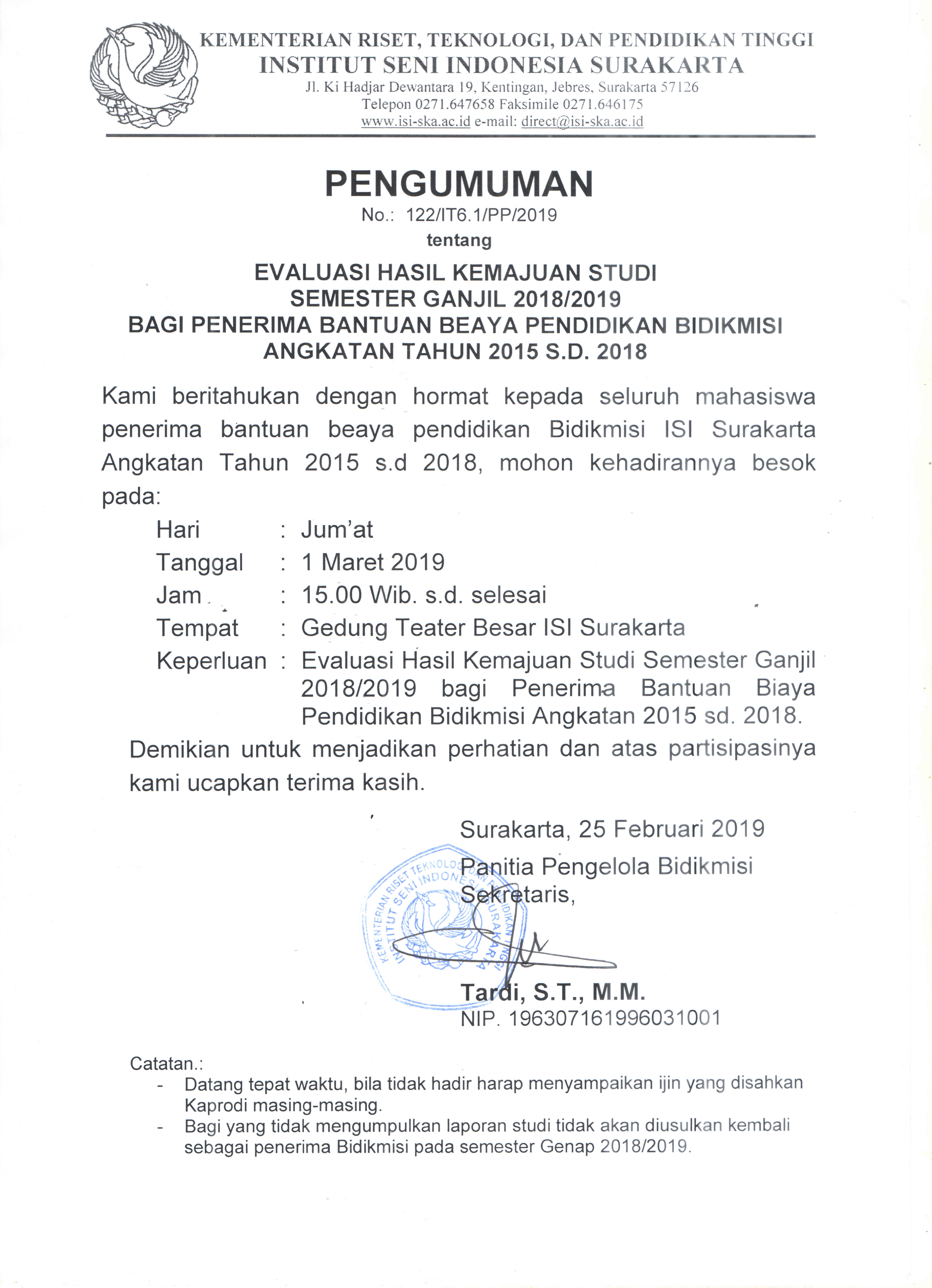 Pengumuman – Informasi ISI Surakarta