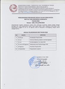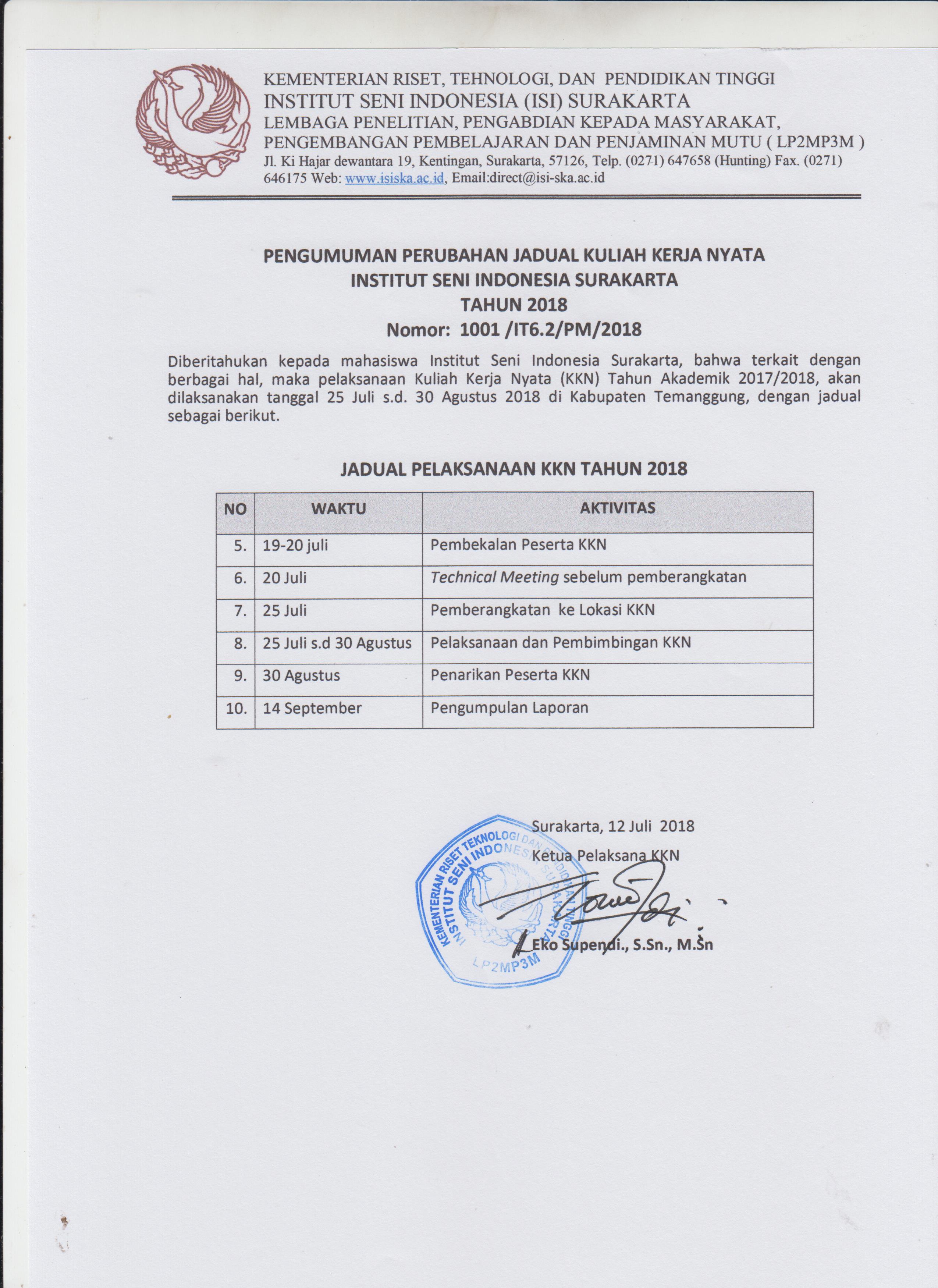 Jadual Pelaksanaan KKN 2018 ISI Ska Di Kab. Temanggung