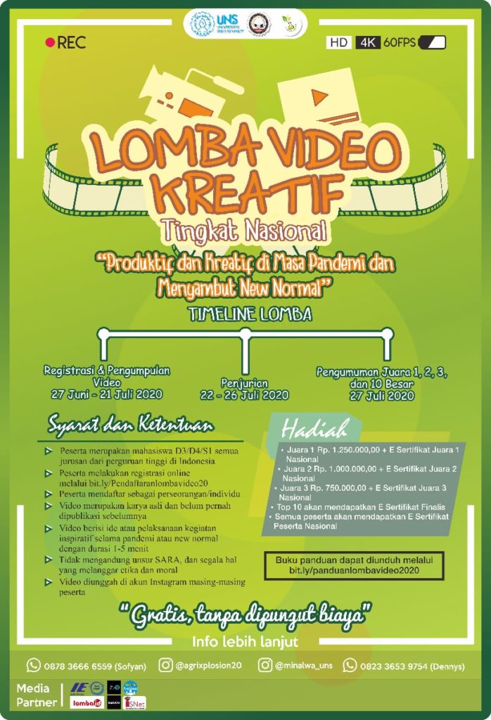 LOMBA VIDEO KREATIF ringkat NASIONAL “Produktif Dan kreatif di Masa Pandemi dan Menyambut New Normal”