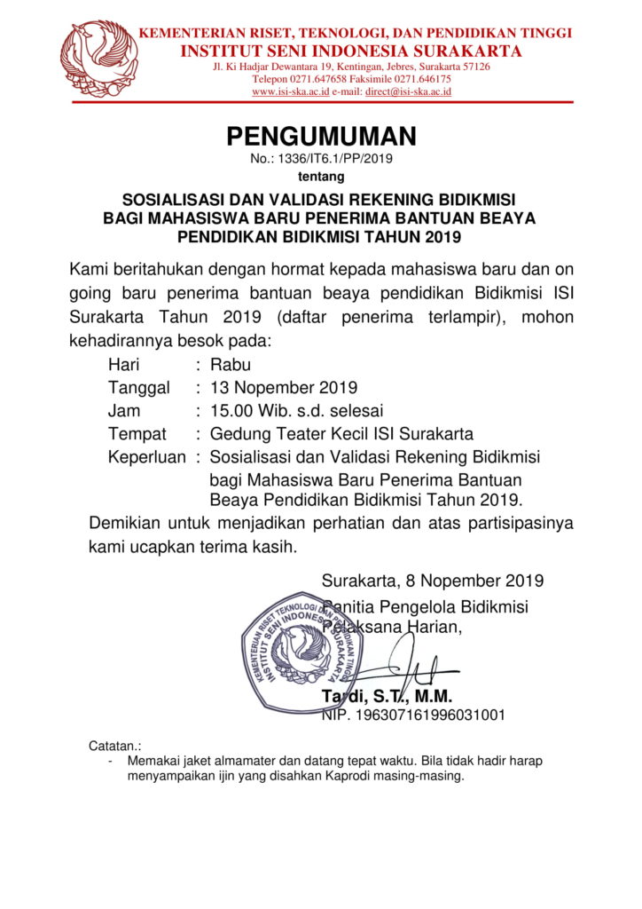 Pengumuman – Informasi ISI Surakarta