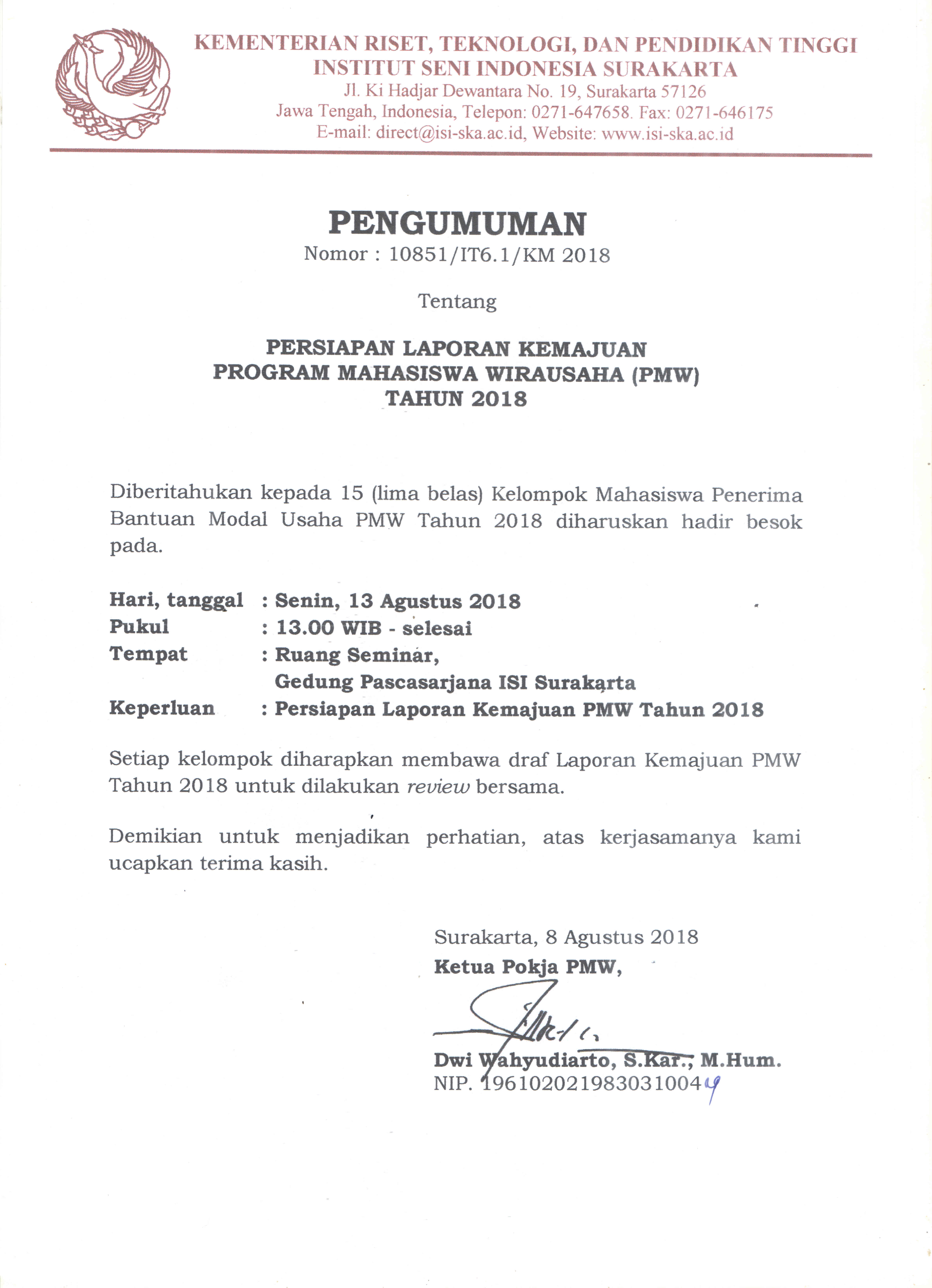 PMW: PERSIAPAN LAPORAN KEMAJUAN PROGRAM MAHASISWA WIRAUSAHA TAHUN 2018
