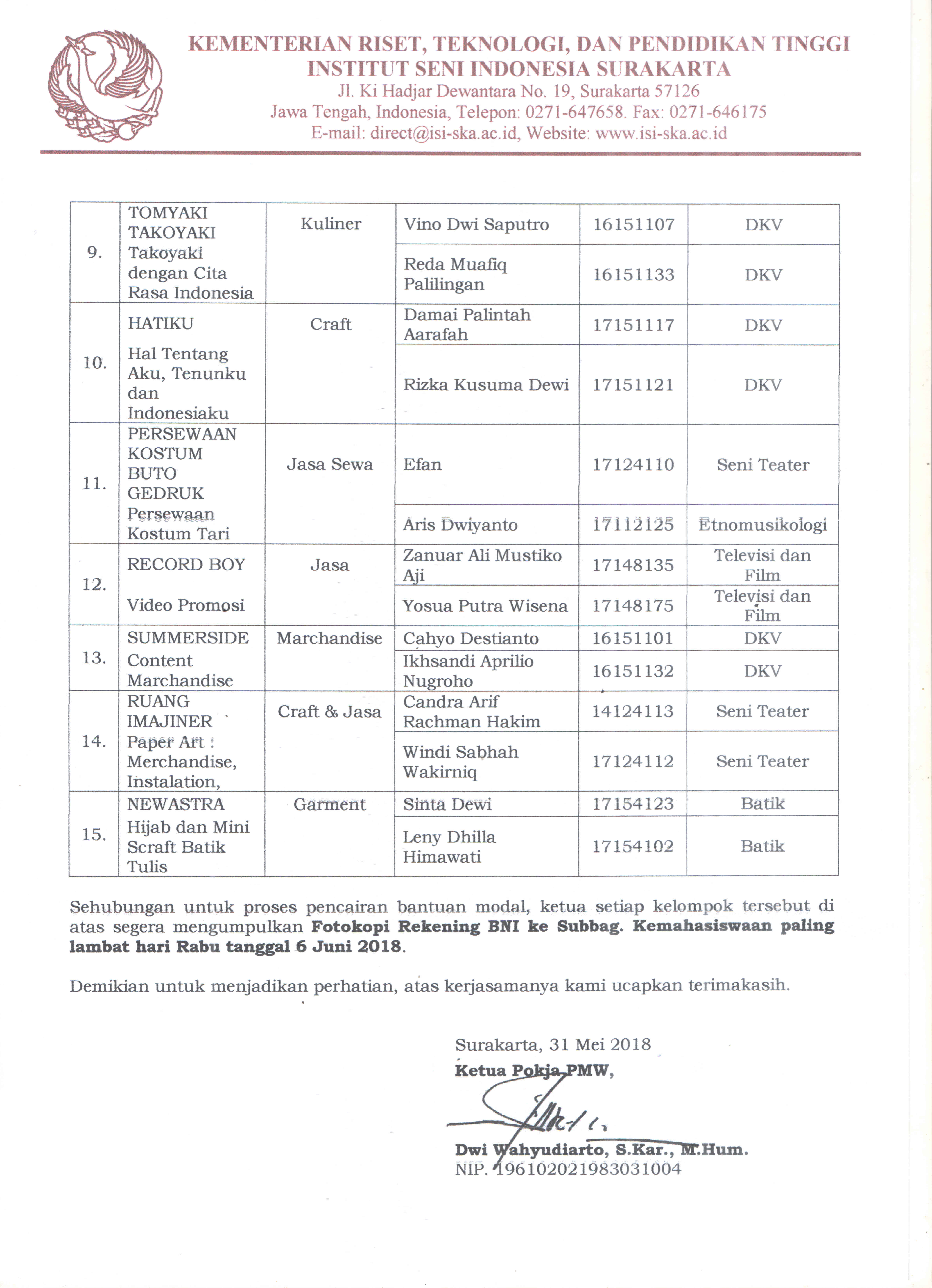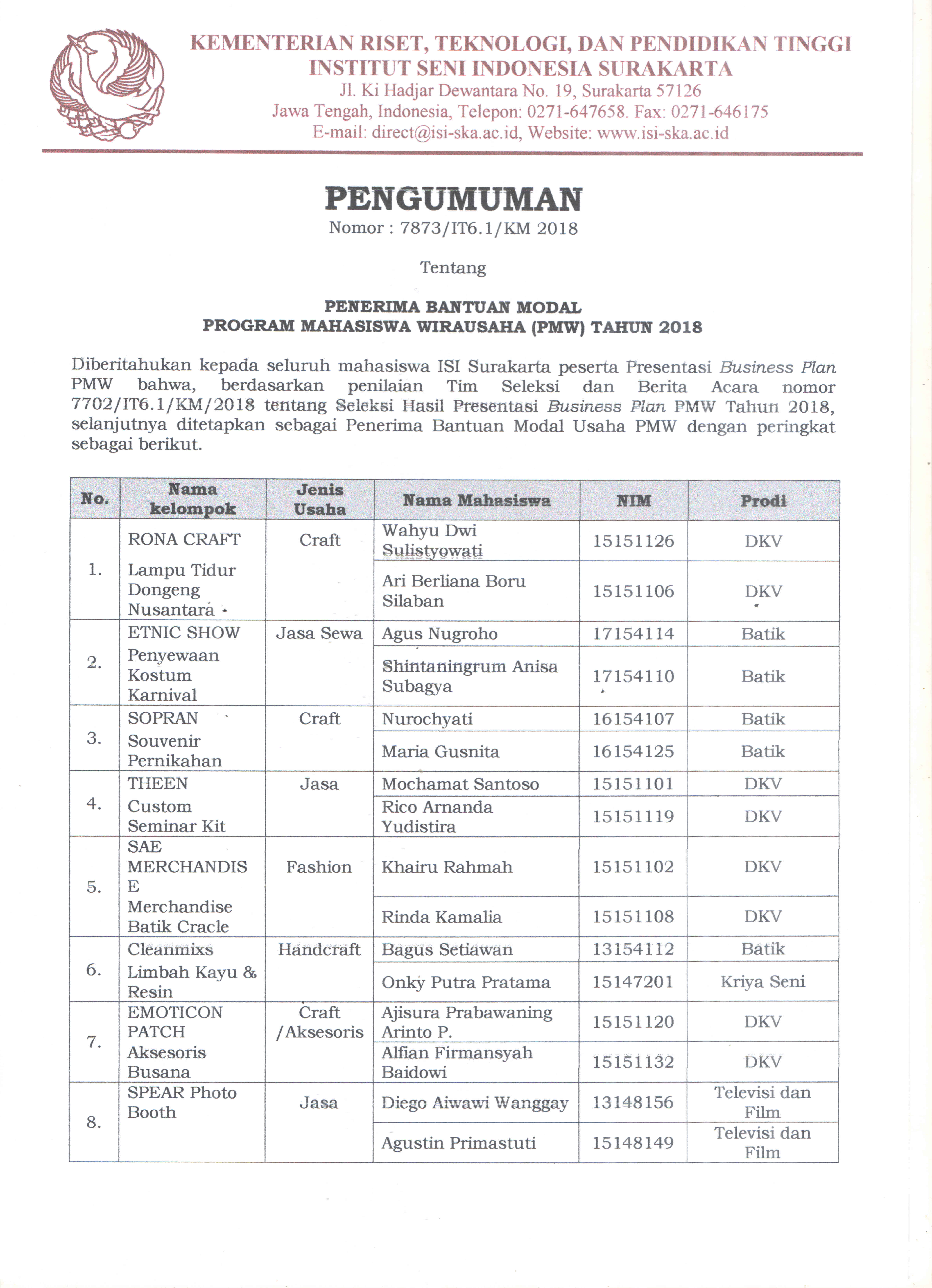 Pengumuman – Informasi ISI Surakarta