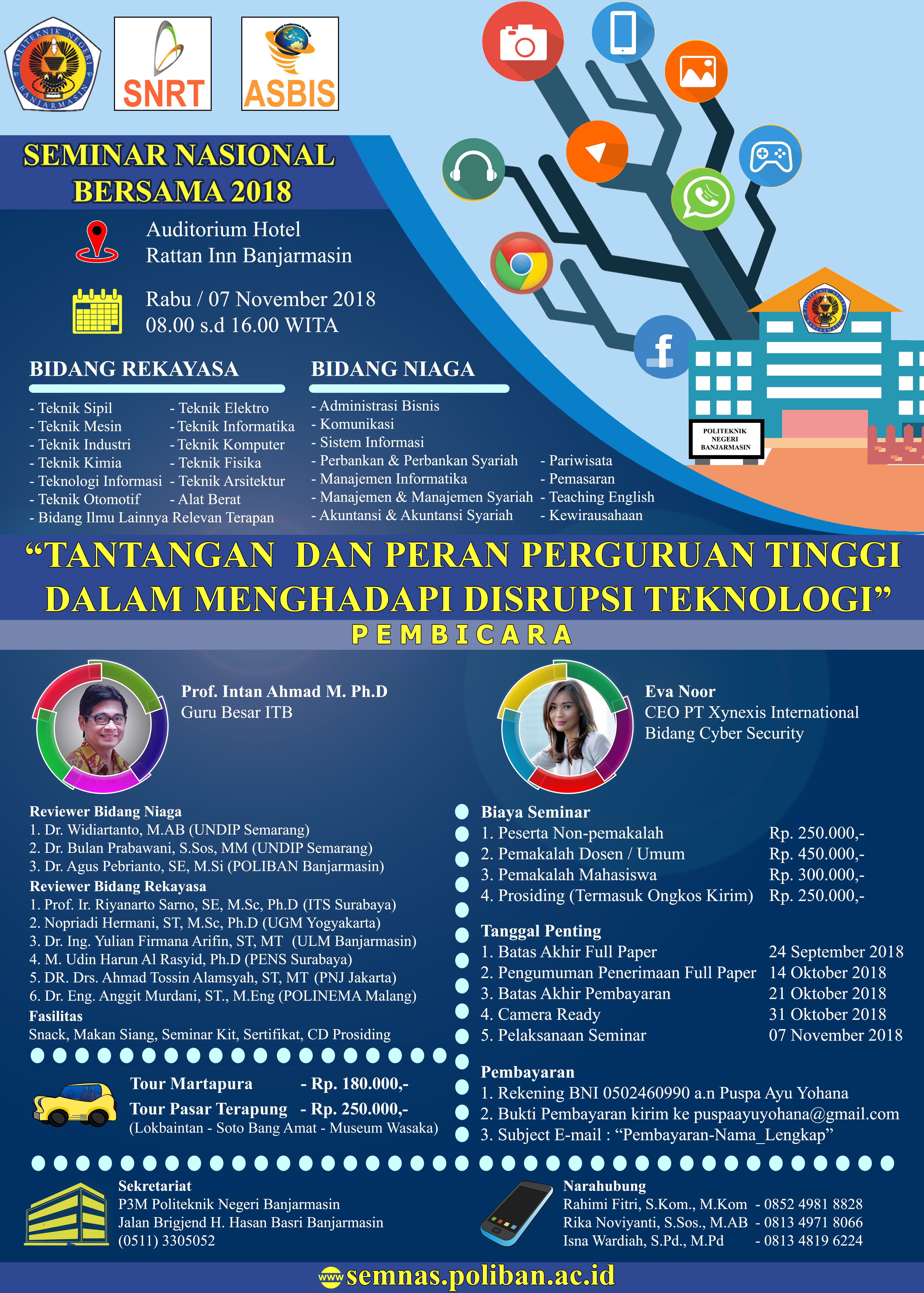Seminar Nasional Riset Terapan (SNRT) III & National Conference on Applied Science, Business and Information System (ASBIS) III Politeknik Negeri Banjarmasin Tahun 2018