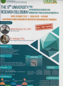The 9th University Research Colloquium : Aktualisasi Nilai Kearifan Lokal Berbasis Riset Pada Era Revolusi Industri 4.0