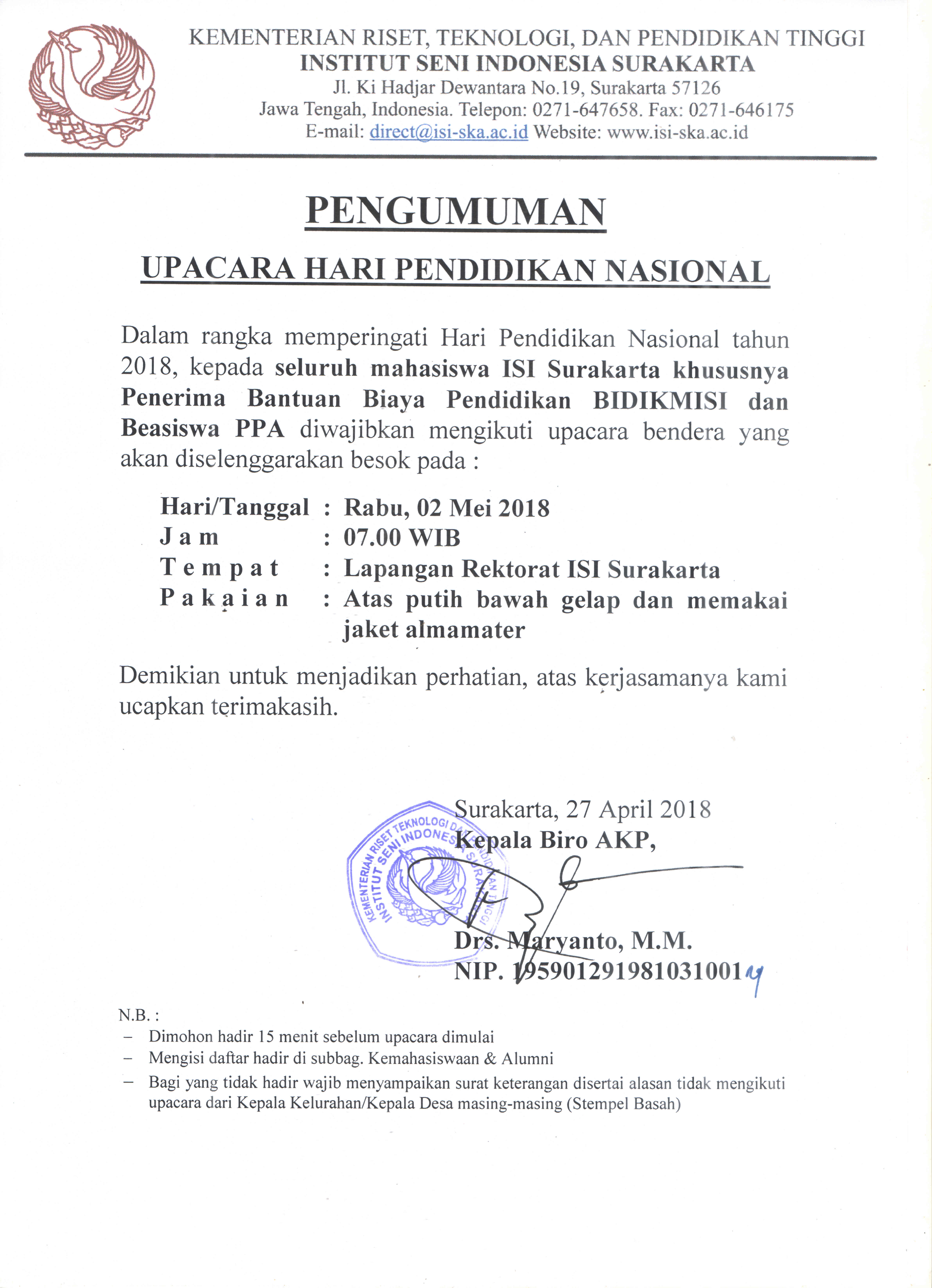 Pengumuman – Informasi ISI Surakarta